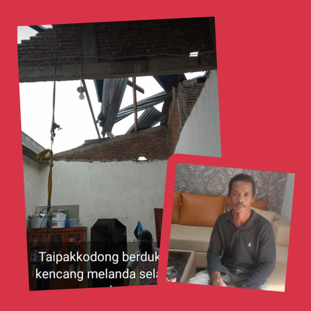 Seperti di alami, Dg Tayang warga dusun Taipa Kodong Desa Bungaejaya Kecamatan Pallangga Gowa, berprofesi buruh bangunan misalnya. Rumahnya di pora porandakan oleh angin puting beliung Selasa (03/01/23) sepekan lalu. Kata Dg Tayang, 60 lembar, atap seng terseret angin beserta balok 25 batang. Apalagi terkena dampak bencana alam, tentu bagi saya berhubungan langsung dengan sisi Kemanusiaan.