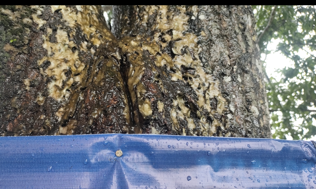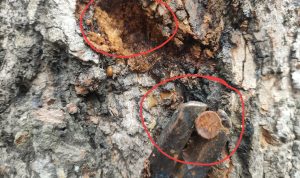 Begini kondisi pohon sudah rapuh/ rusak akibat paku Benner Caleg DPRD Dapil 7 foto : (Naja)