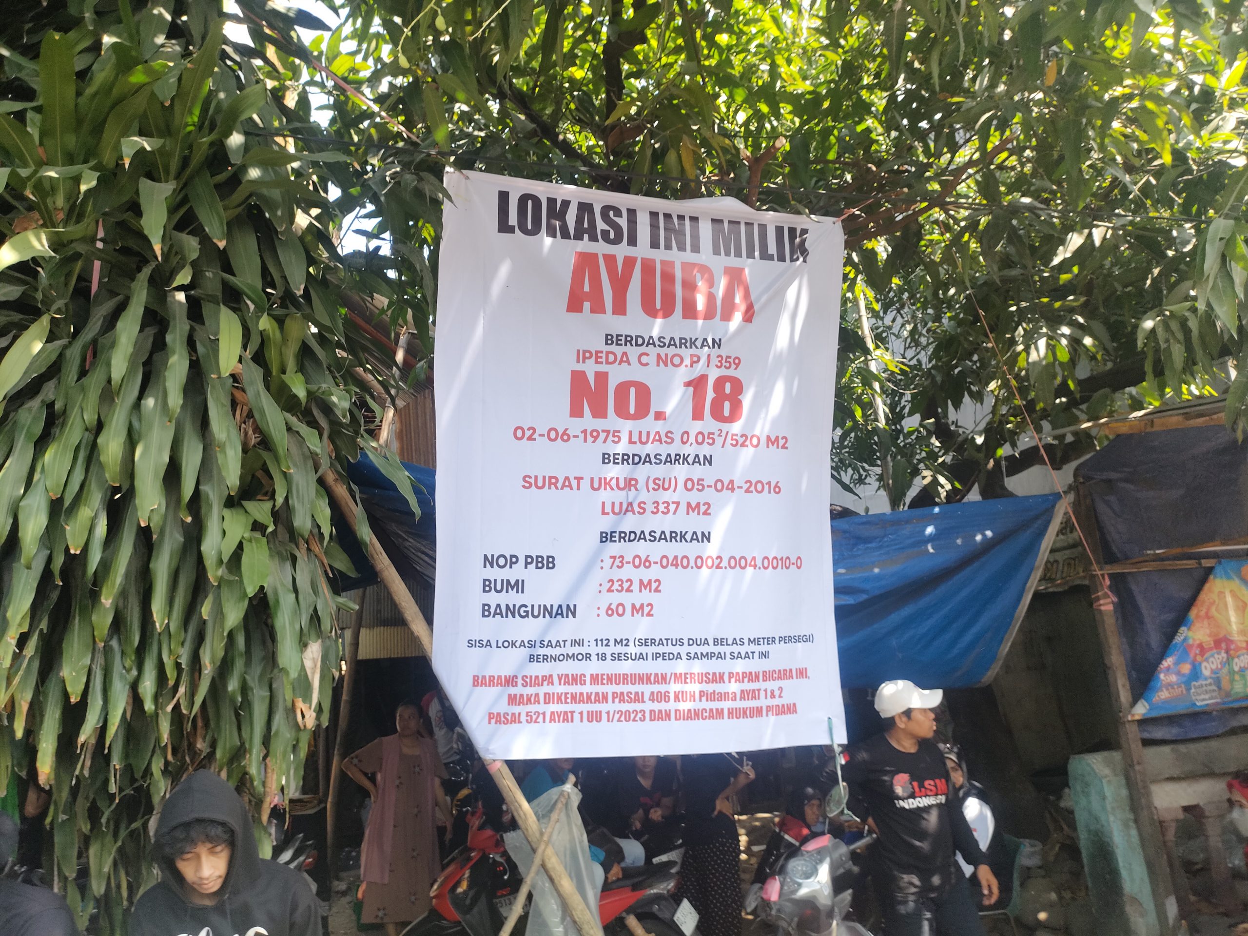 Kronologis bermula H. Mone jika tanah orang tua kami Ayuda seluas 104 meter persegi, mengklaim miliknya.