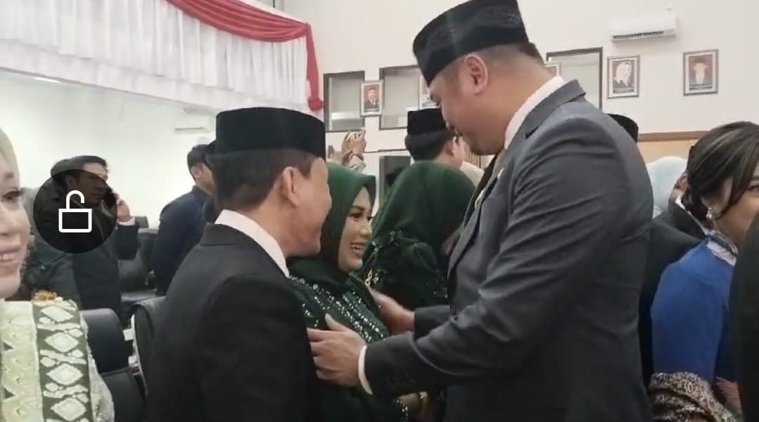 Nurinzana Dg Tadaeng Anggota DPRD Gowa, saat di beri Selamat Oleh Bupati Gowa Dr. Adnan Purichta Ikhsan, YL, SH.MH, Senin (9/9/2024) Foto Ani.