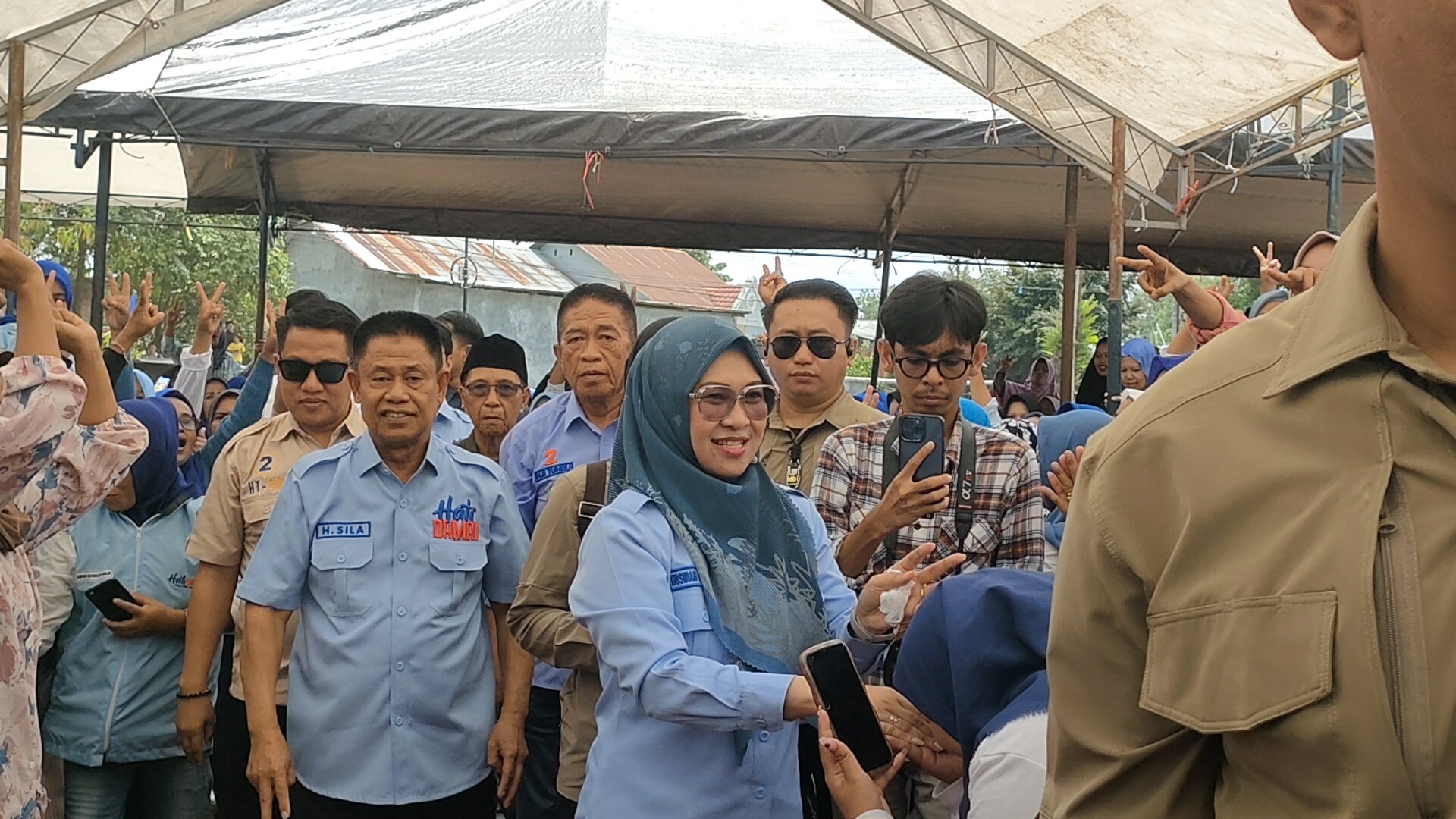 Hj. Husniah Talenrang, saat berkunjung ke desa Tamanyeleng, Kecamatan Barombong Gowa, mereka di sambut ribuan massa masuk memadati ruang acara.