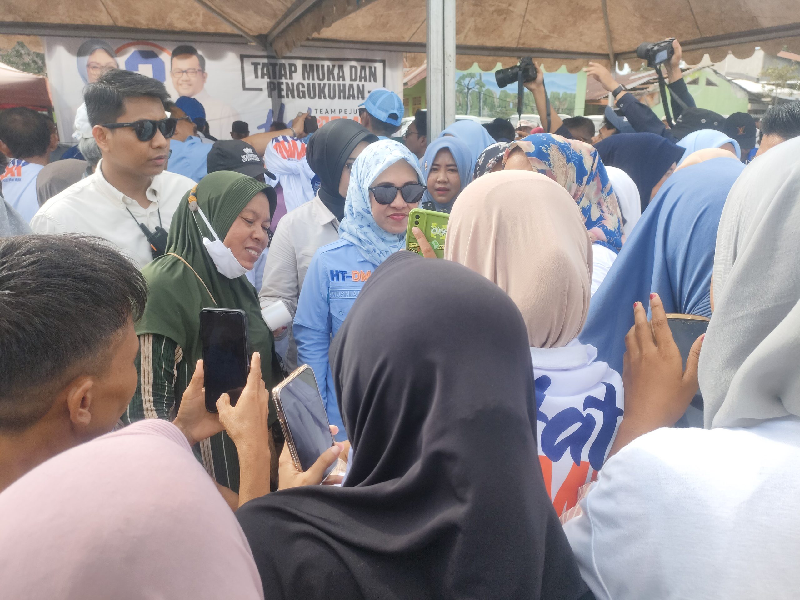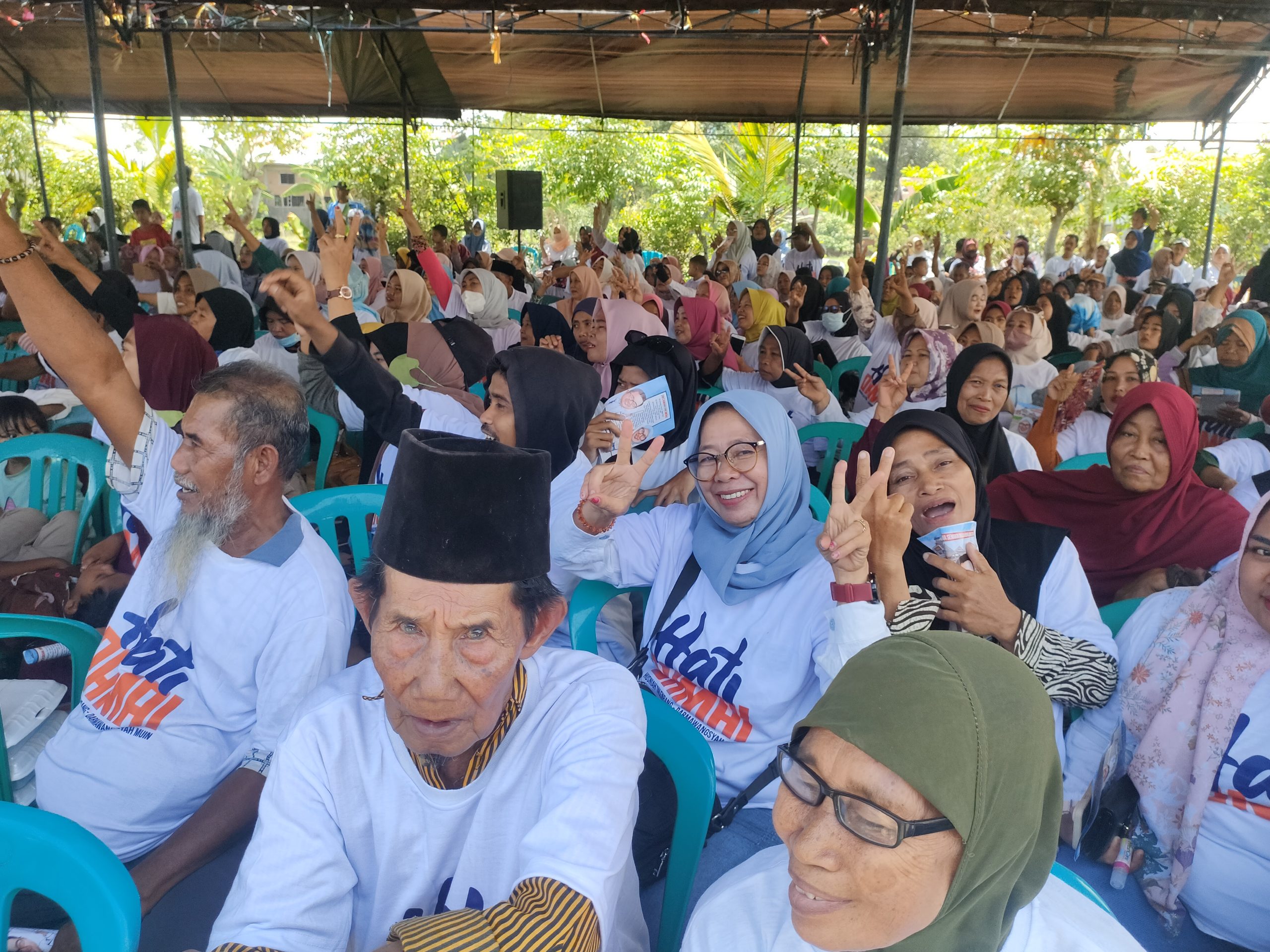 Hj. Husniah Talenrang tiba di pusat acara langsung di sambut kurang lebih 5 ribuan warga berteriak histeris hidup nomor 2 hati Damai … Ayo gas fuuullll …. coblos nomor 2 …perempuan tangguh dan hebat asli Bontonompo Gowa.