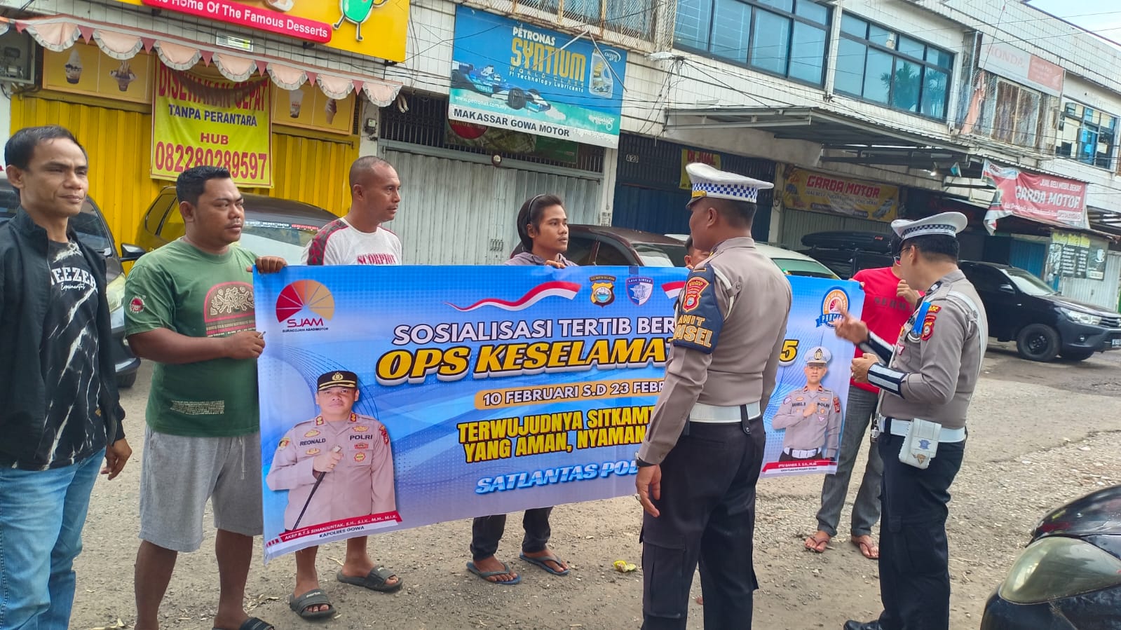 Satuan lalulintas Polres Gowa dipimpin oleh Kanit Keamanan dan keselamatan (Kamsel) Ipda Usaman kembali turun kejalan mensosialisasikan 8 program prioritas operasi keselamatan pallawa 2025, Senin (17/2/2025).