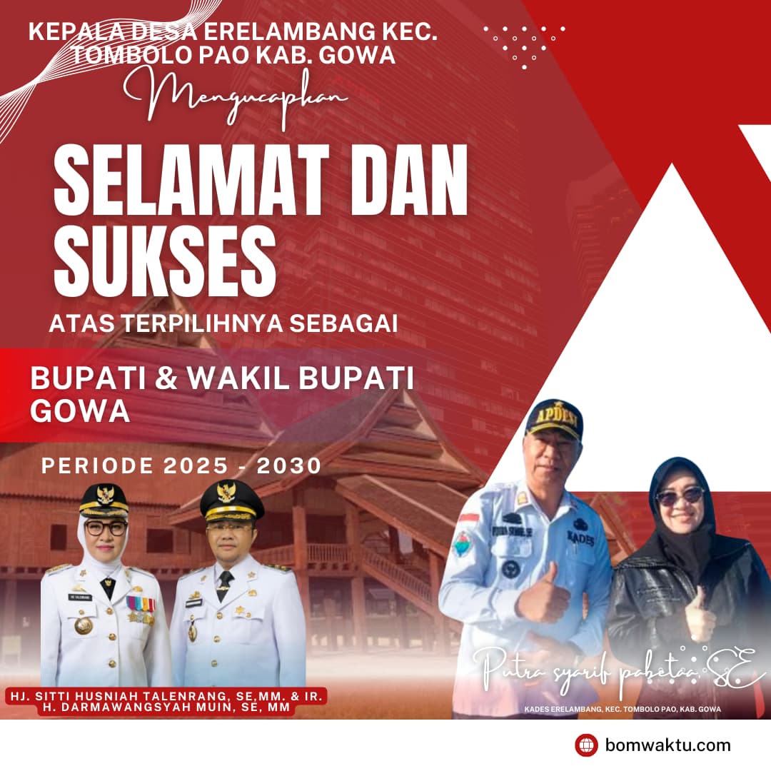 Dan selamat datang Bupati Gowa, yang baru, Dr. Hj. Husniah Talendrang, SE, MM, dan Wakil Ir. H. Darmawangsyah Muin, ST, M.Si, pada hari Jum’at (28/2/25) semoga masyarakat Kabupaten Gowa, tambah sejahtera dan bersinar, semoga tuhan melindungi.