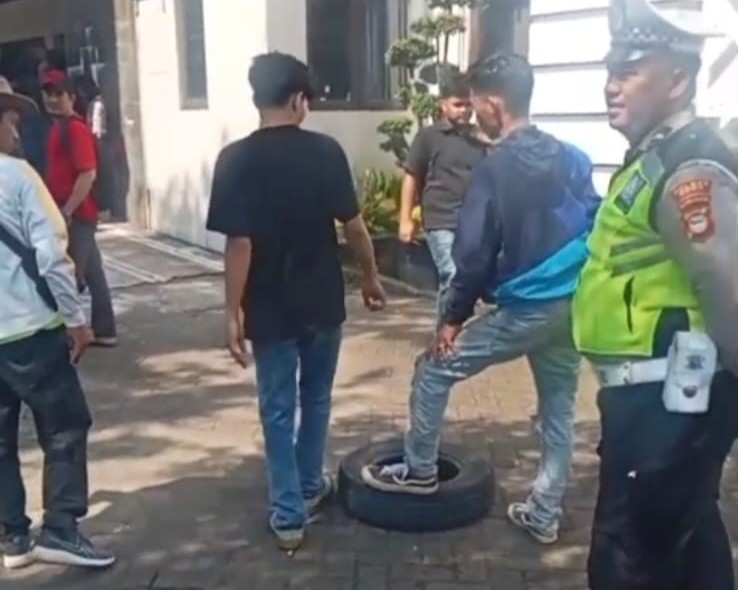 Pasalnya, massa aksi diperbolehkan masuk hingga ke area dalam gedung dan melakukan pembakaran ban.
